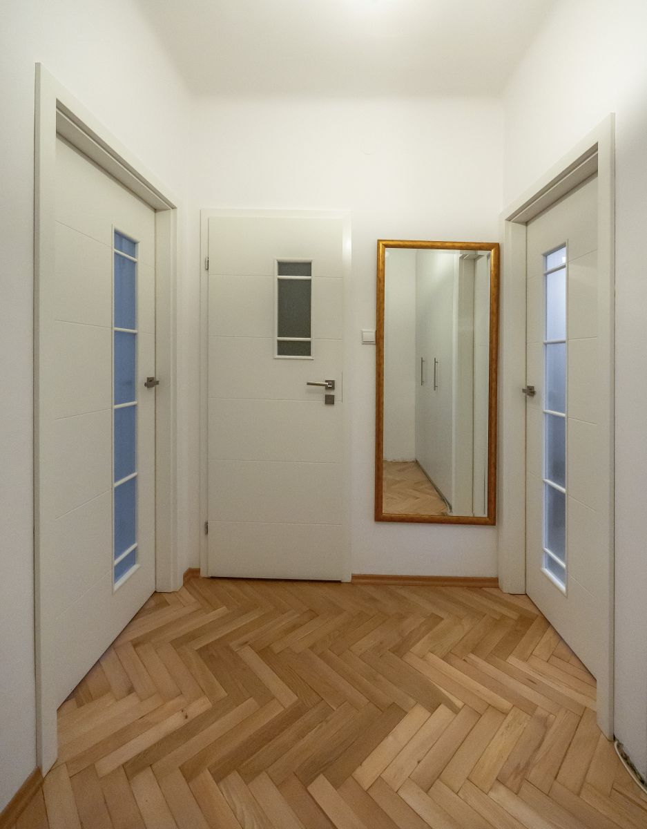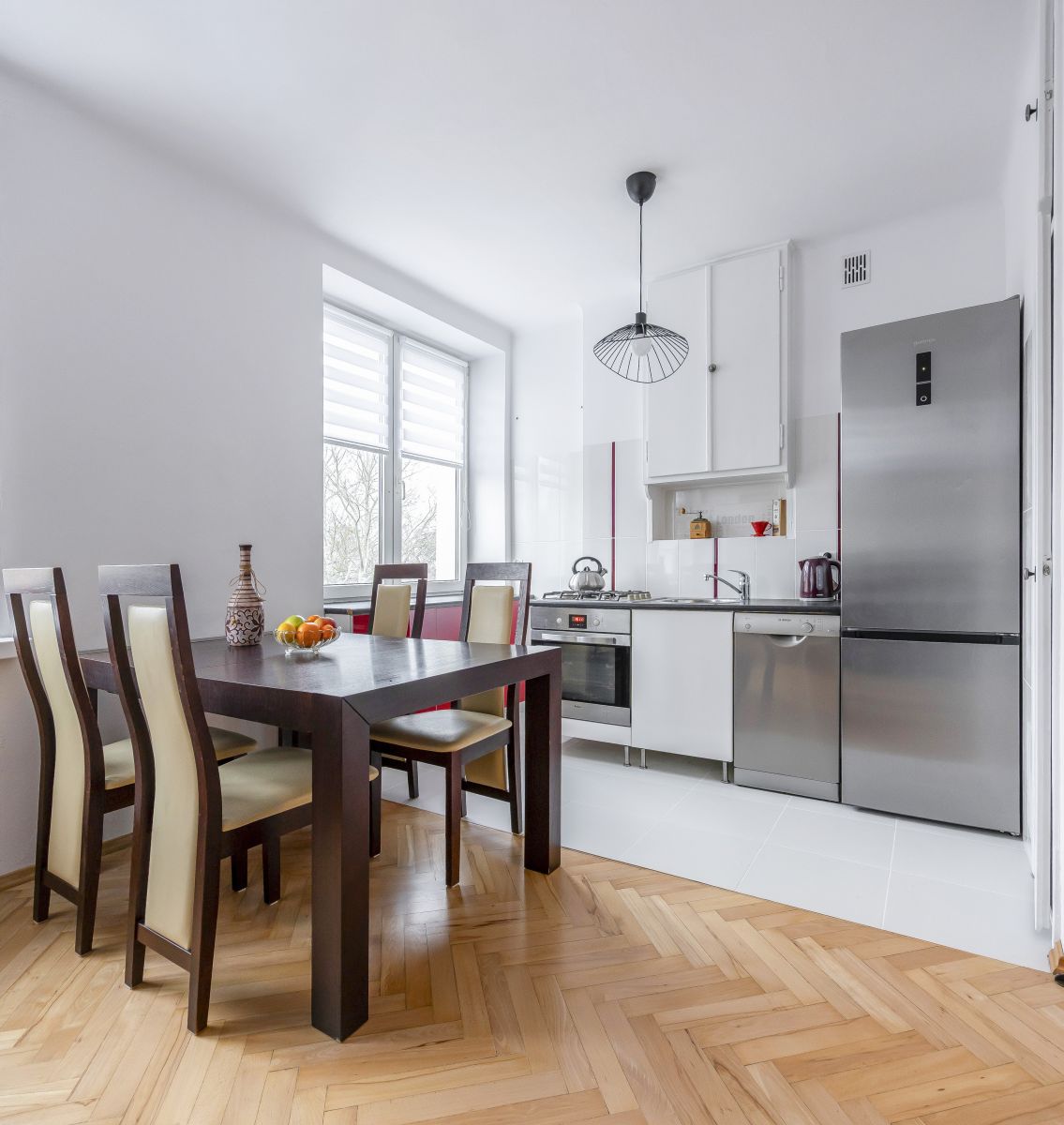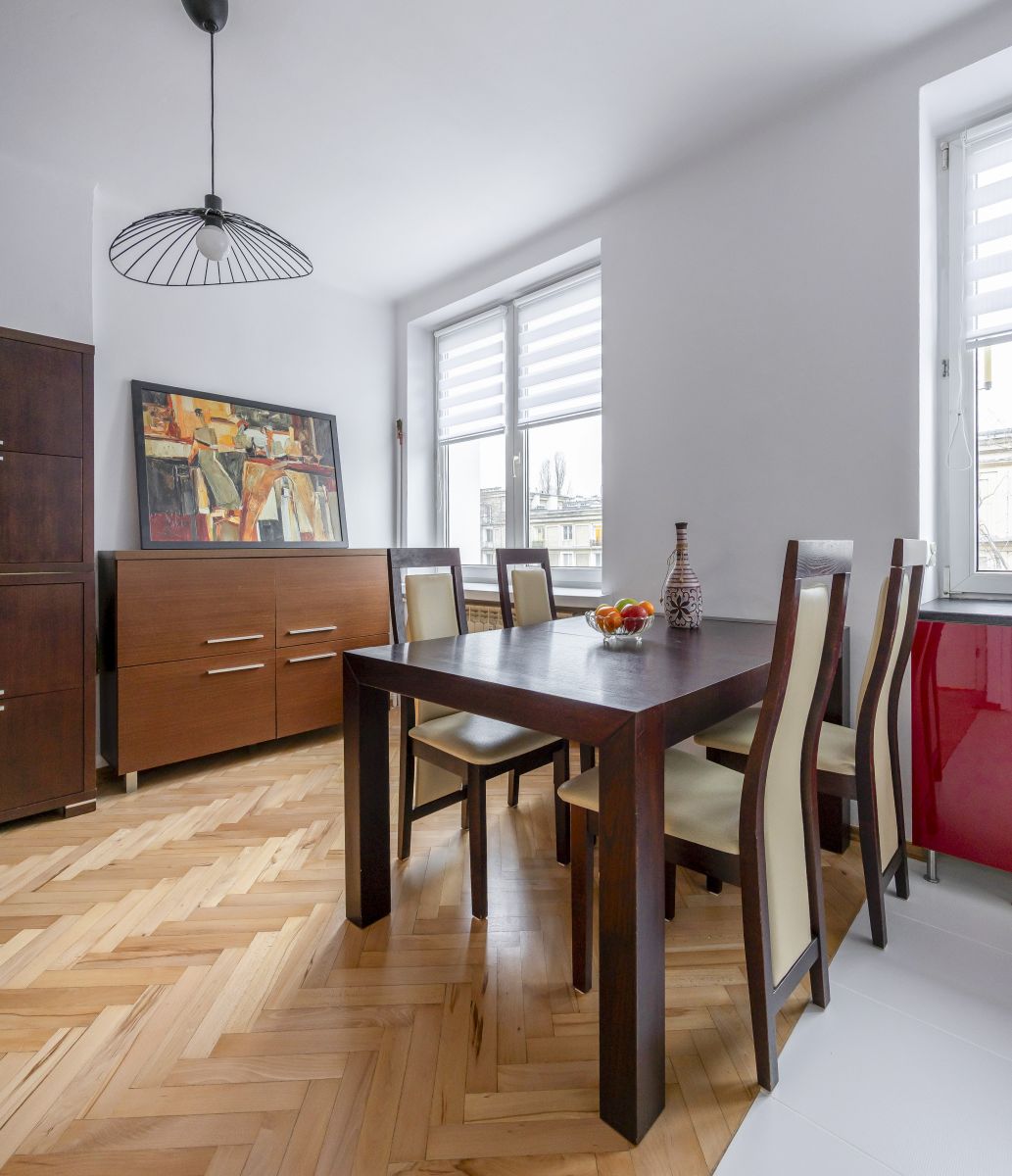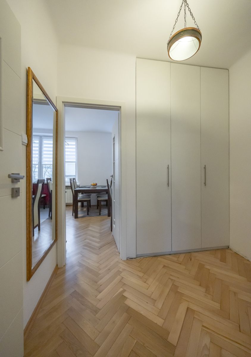 Na szczególną uwagę zasługuje oryginalna drewniana podłoga, która przeszła profesjonalną renowację i doskonale podkreśla charakter kamienicy.