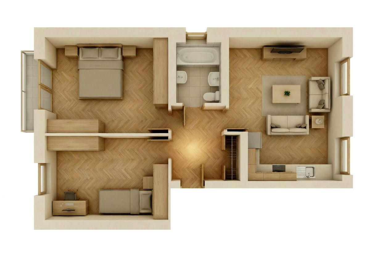 • funkcjonalny przedpokój z szafą wnękową i pawlaczem.