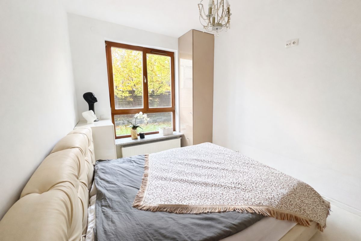 Na sprzedaż przytulne, jasne mieszkanie z własnym ogródkiem na kameralnym i zielonym osiedlu „Zdrowa” przy ul. Sejmu Czteroletniego w Wilanowie.