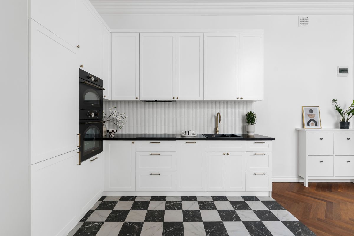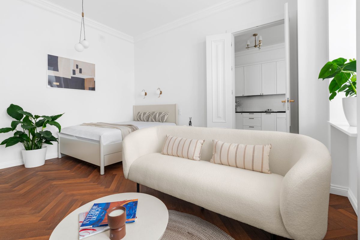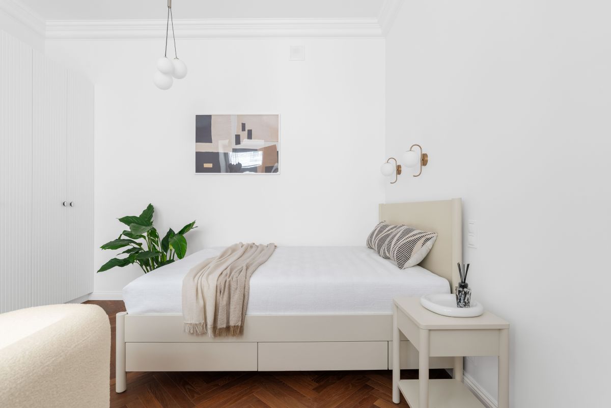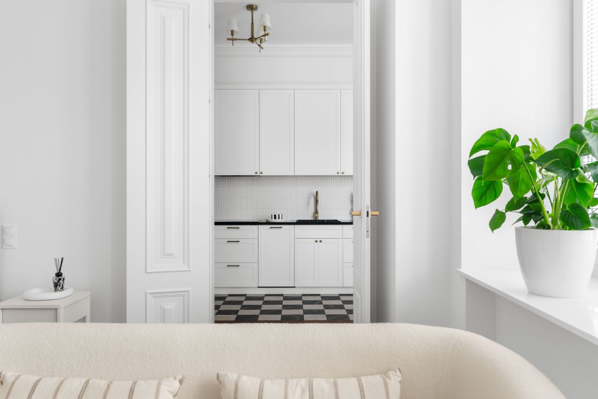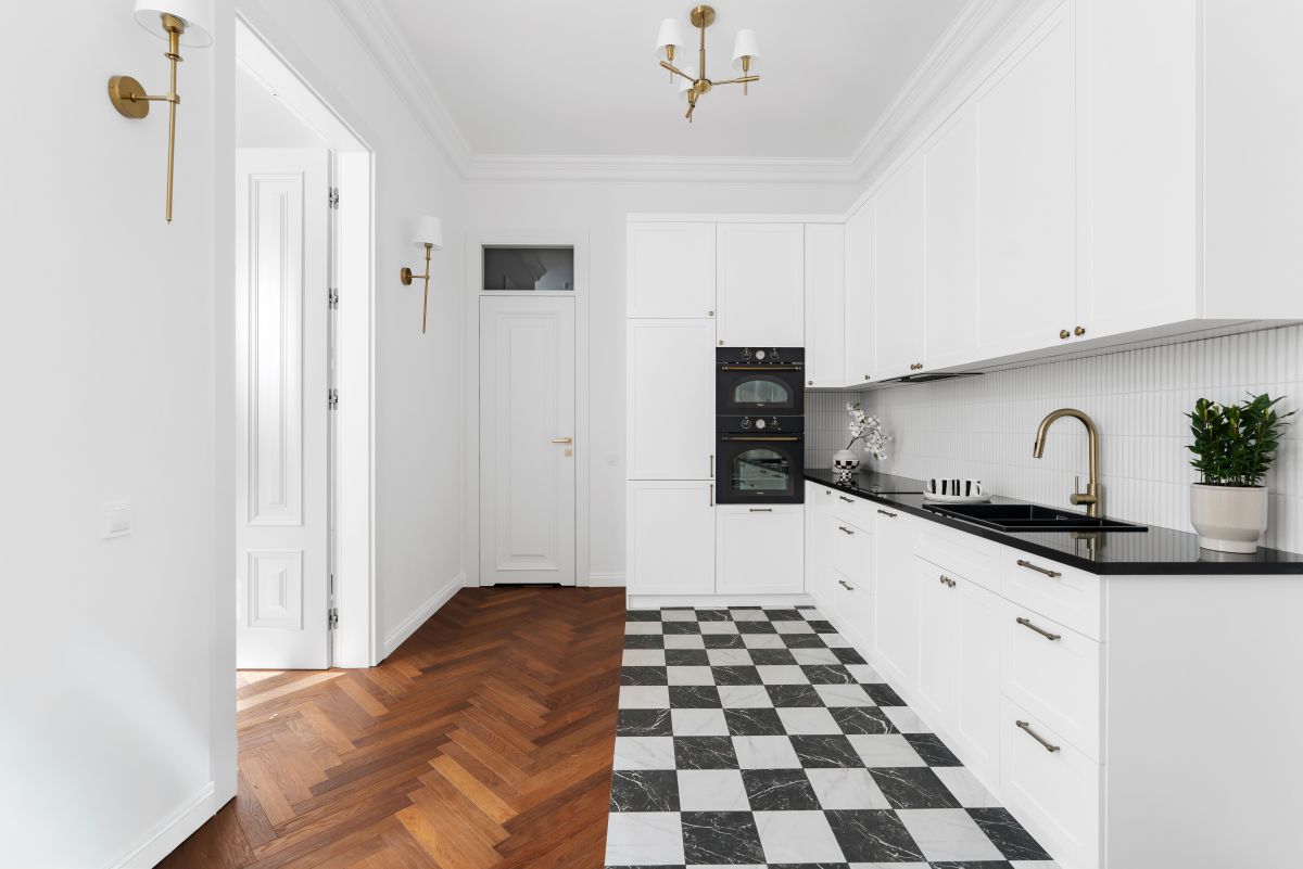Przedwojenne proporcje wnętrz zapewniają poczucie przestrzeni i światła nieosiągalne w nowym budownictwie. Starannie dobrane materiały i spójna aranżacja tworzą eleganckie, ponadczasowe wnętrze — gotowe bez remontu.