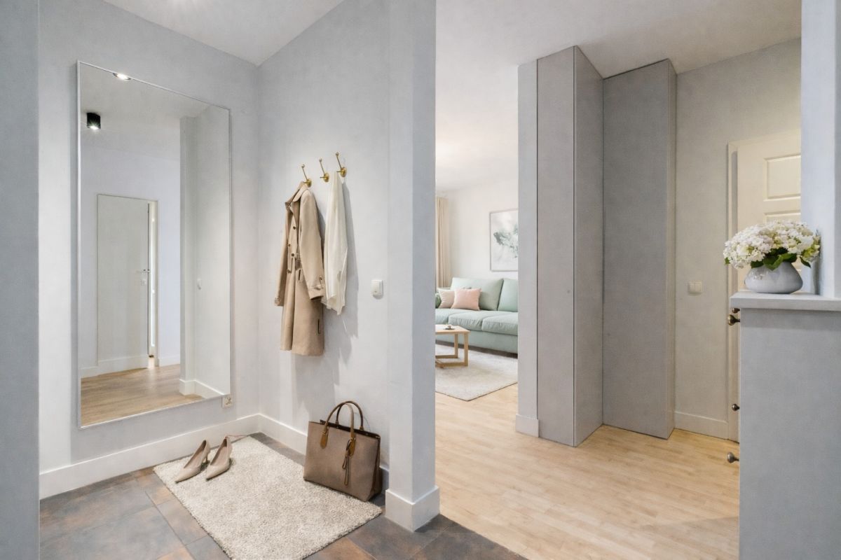 - Przedpokój - ok. 7 m². Z pojemną, zabudowaną szafą, która pomieści ubrania i akcesoria domowe.